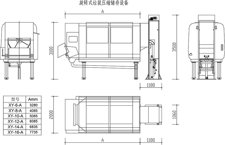 1. Working principle: rotary compression storage of drum spiral blades. The drum and blade are made of SUS304 stainless steel plate with good corrosion resistance. When the garbage enters the drum, the drum rotates to compress the garbage under the action of spiral blades.