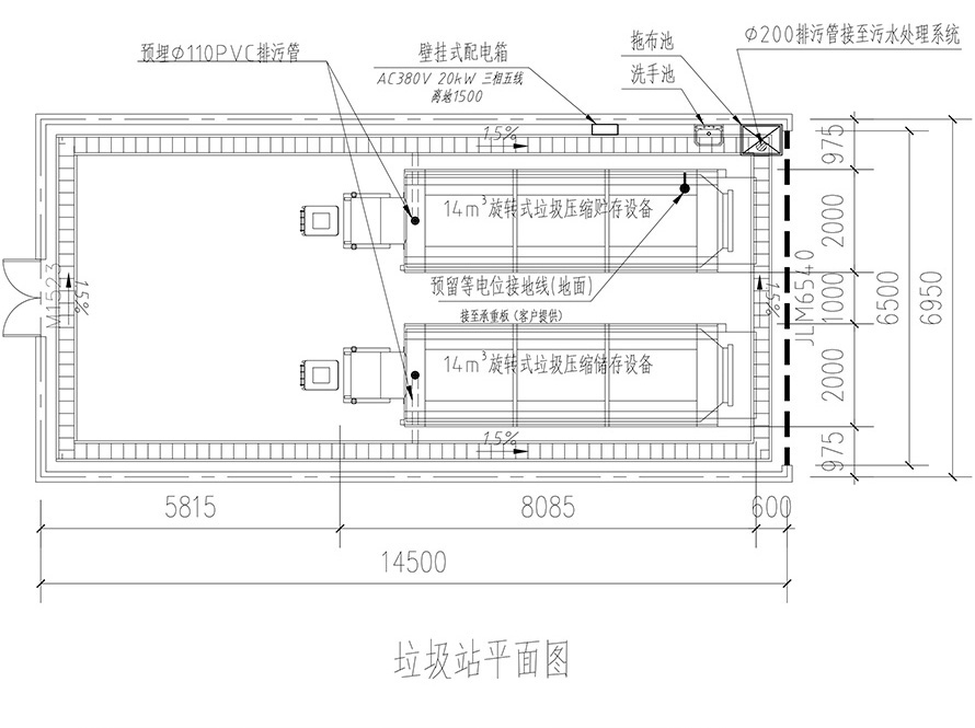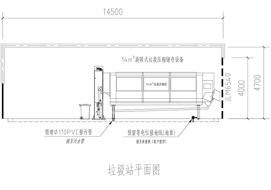 3. The sewage pipe (ø 160) is reserved below one side of the equipment garbage inlet.