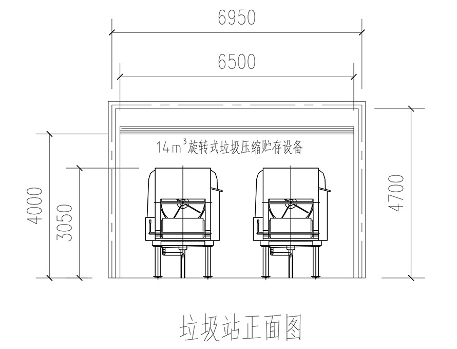 2. When the municipal sanitation vehicle comes to clear and transport the garbage, the sanitation vehicle reverses to the wheel stopper, presses the equipment discharge button, the discharge door opens, the cylinder rotates, and the garbage is discharged to the sanitation vehicle under the push of the blade.
